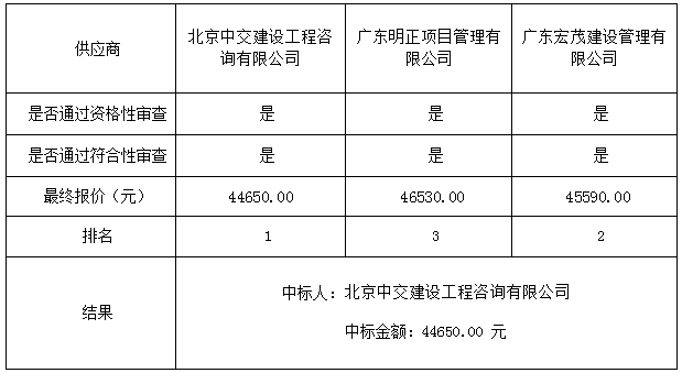 1:中標(biāo)供應(yīng)商名稱北京中交建設(shè)工程咨詢有限公司 法人代表 陳榮輝 地址北京市朝陽區(qū)北苑路170號(hào)凱旋城3號(hào)樓4層0501